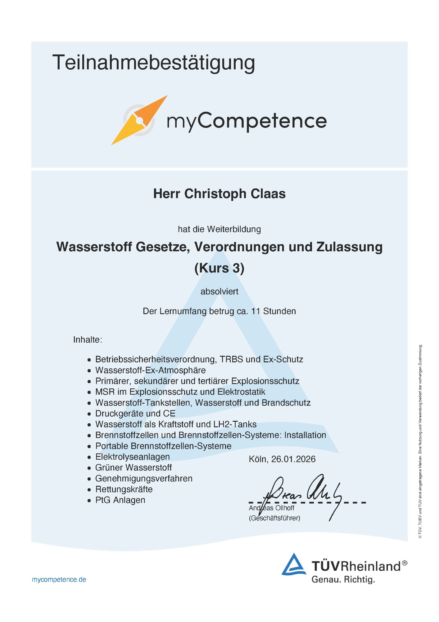 Kontaktieren Sie CHEC noch heute, um mehr über meine Dienstleistungen zu erfahren und wie ich Ihnen helfen kann, Ihre Ziele im Bereich Wasserstofftechnologie zu erreichen.
